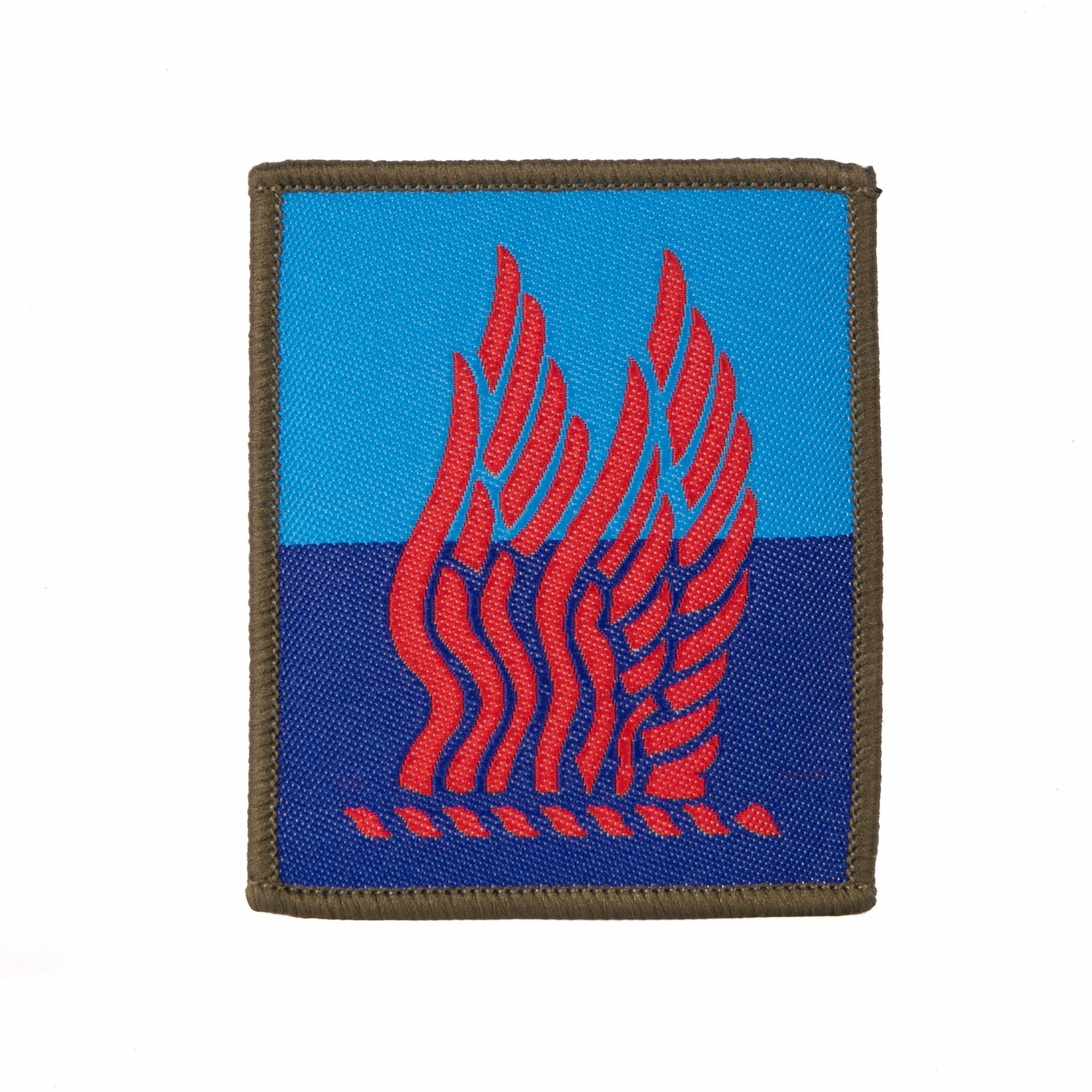 1st Aviation Brigade - Red Wings on light blue, dark blue halves with olive overlocking. 5.5cm x 6.5cm