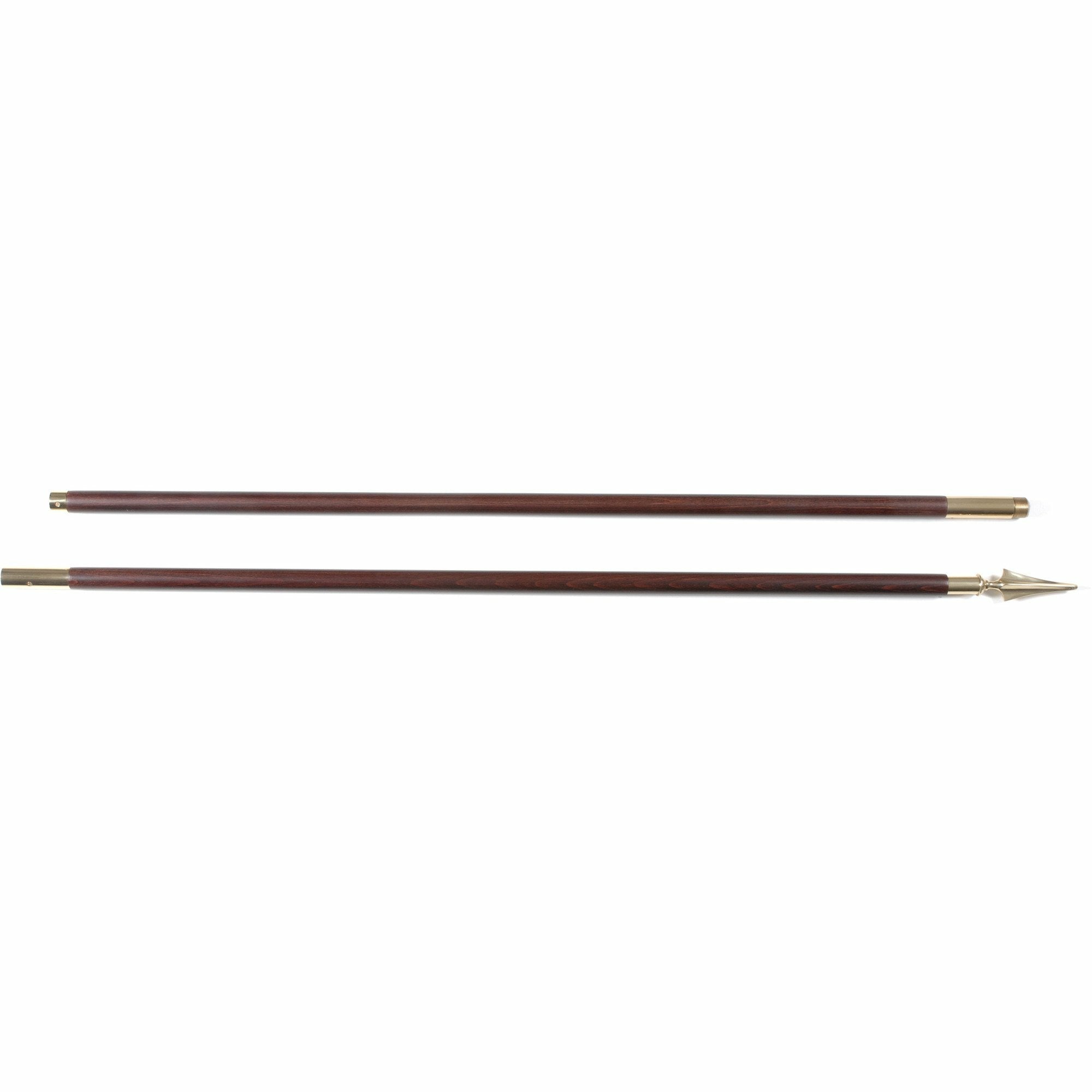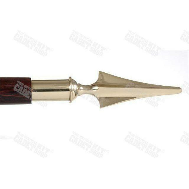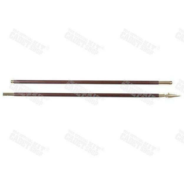 7ft x 1.25 inch diameter Ceremonial pike. These are made from mahogany stained Beechwood, of uniform colour, straight grained and free from knots, worm holes and other imperfections. All mounts are polished brass and lacquered to prevent against tarnishing. Jointed for easy storage, the screw thread fittings allow for quick assembly.