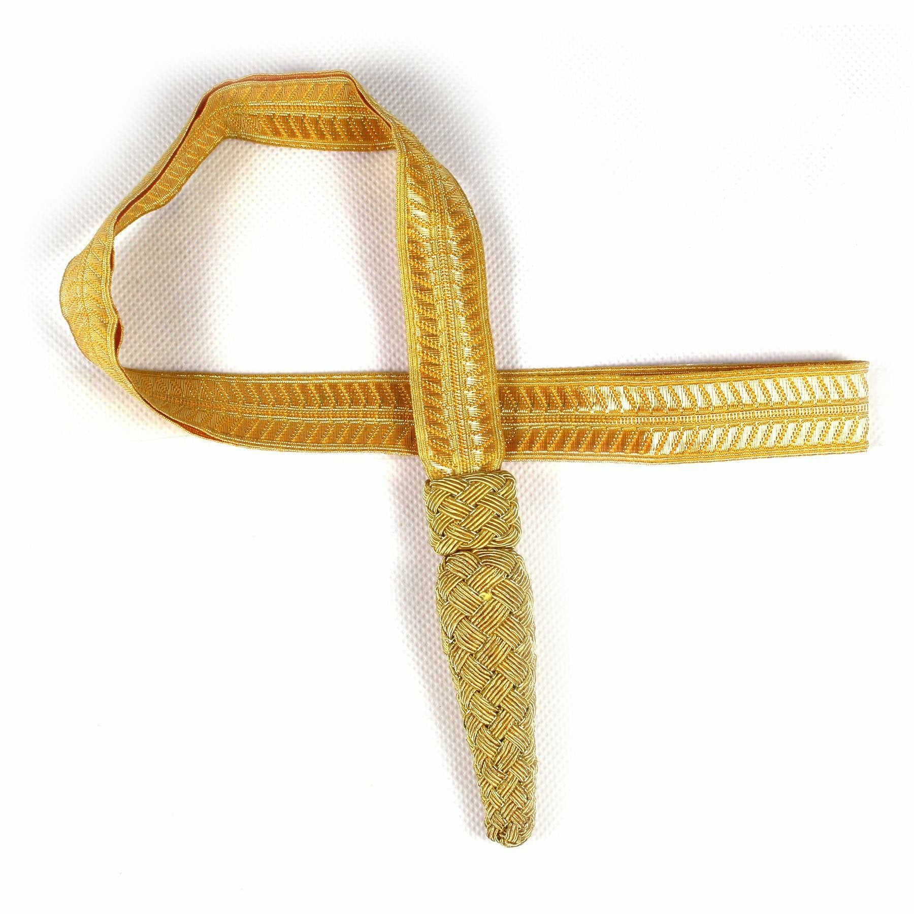 Gold Wire lace 20mm wide x 355mm long (double) excluding bullion wire - Turks head which is 20mm x 60mm and a 18mm x 18mm bullion wire knot.
