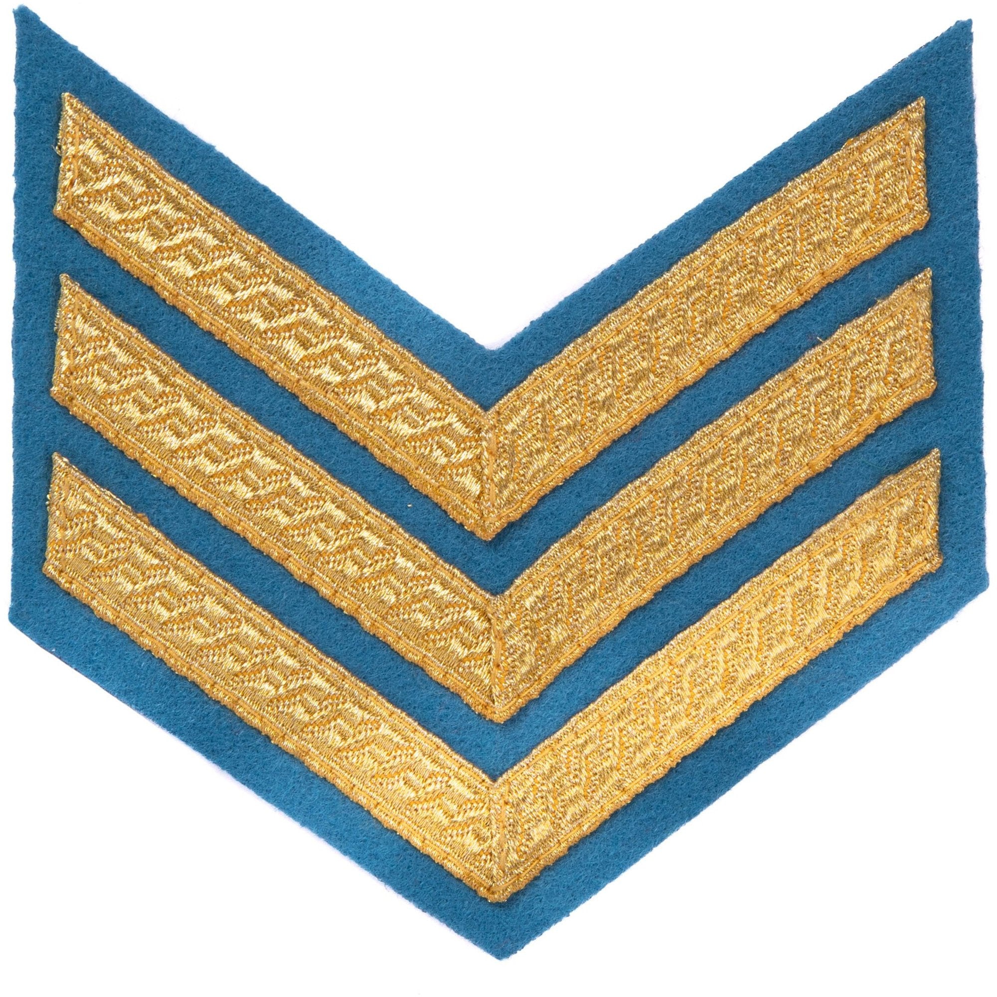 Highest quality embroidery badges sewn onto Cambridge Blue backing worn on Mess Dress