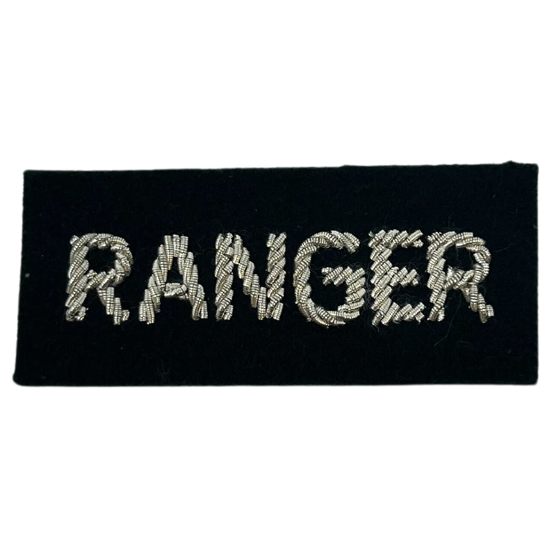 Officers  & OR  Mess Dress RANGERS Qualification Badge-Rifle Green -Silver Wire -2.5cm x 1cm