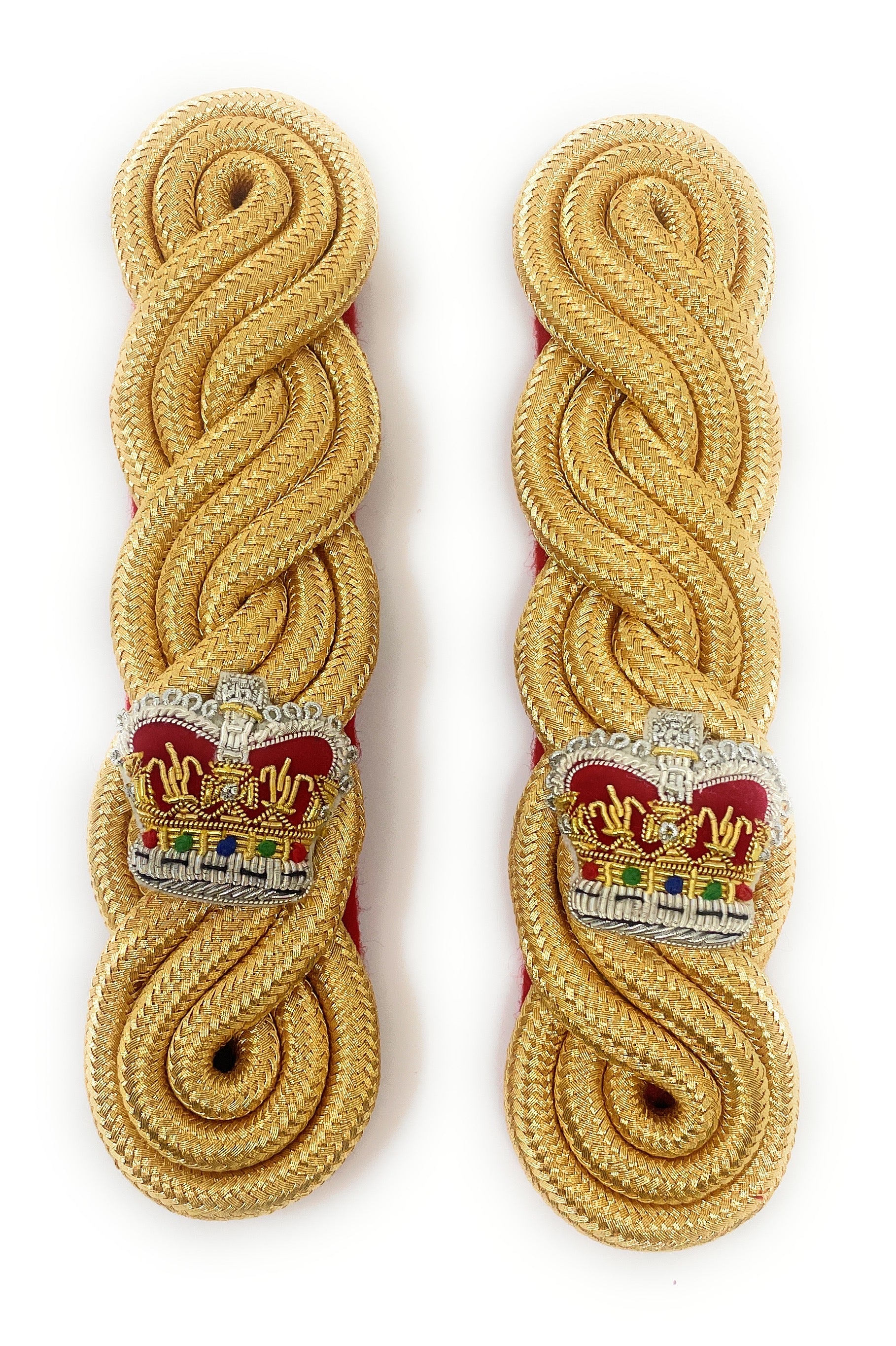 DND2820 - 1B Full Dress Shoulder Cords Male - 3 Ply - Gold MP - Scarlet Backing - Major - NSN 8455-20-011-2626