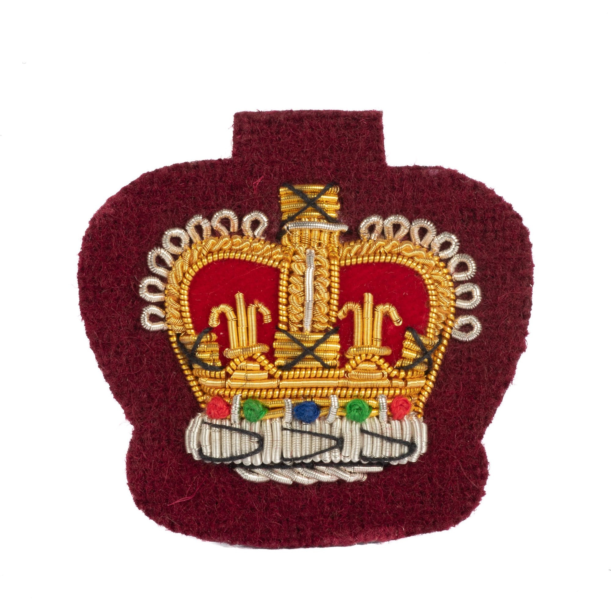 WO2 Embroidered Mess Dress Crowns on crimson backing