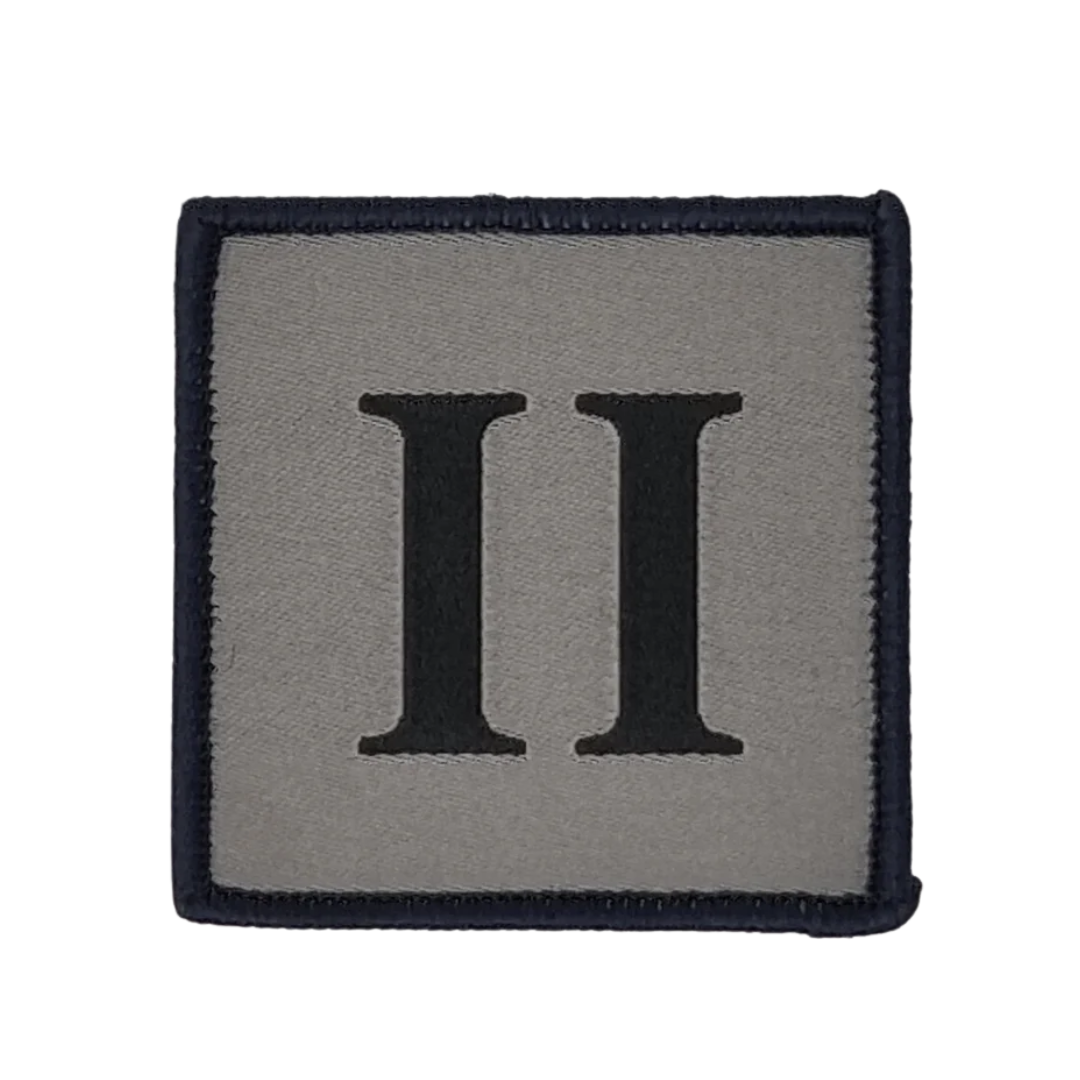 TRF - Ranger - "II" - Black on Grey - 50mm x 50mm with Dark Blue Border - Velcro - Pack of 5